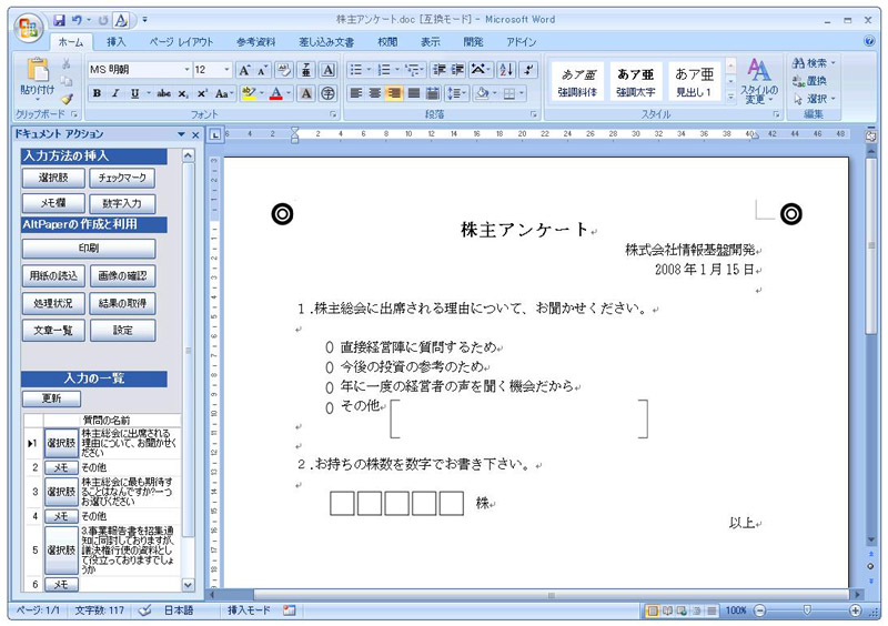 AltPaperの利用イメージ。使い慣れたWord上で手軽にアンケートフォームを作成できるのが特長