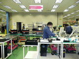PCやワークステーションのアッセンブリ。1ライン6mの中で1台1台異なる機種を組み立てていくが、全体の90%が5台未満の注文という。約1分に1台の割合でPCが組み立てられていくが、全体の生産時間は1台あたり2~3時間だそうだ。使用部品はバーコード管理され、間違った部品が選択されると先に進めないようになっている。
